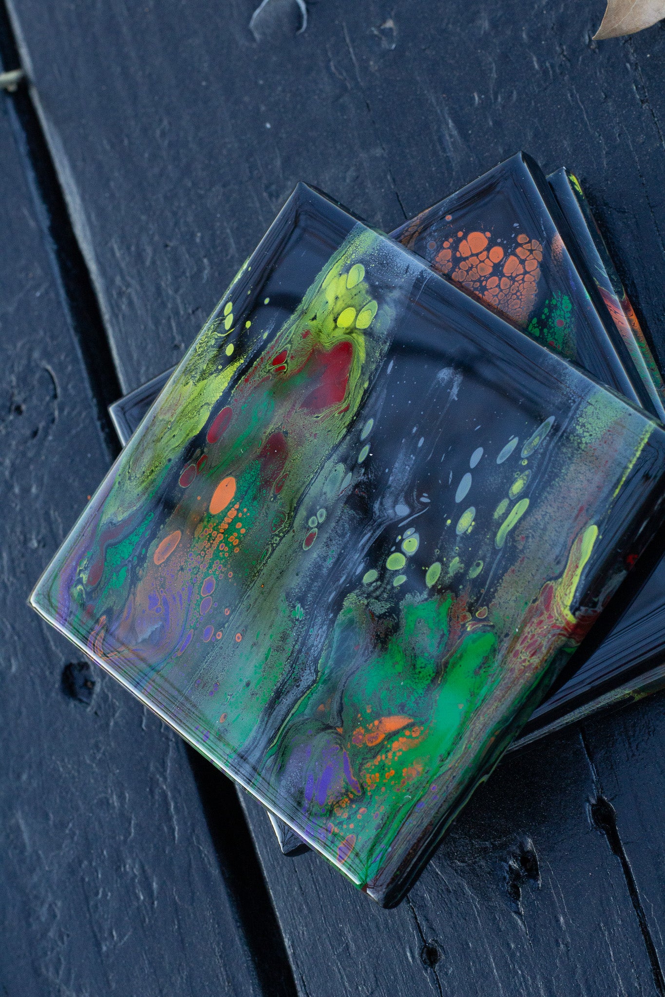 Acrylic Pour Paint Colors: Black, Red, Green, Yellow, Orange, Purple