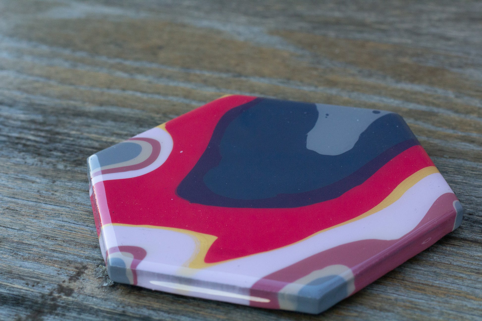 Hexagon Coasters are 4 1/4in x 4 7/8in x 5/16in