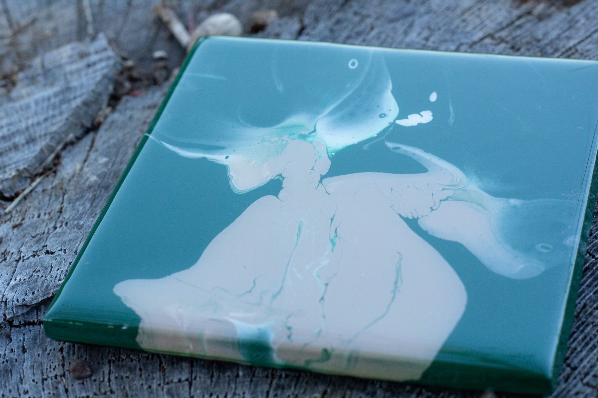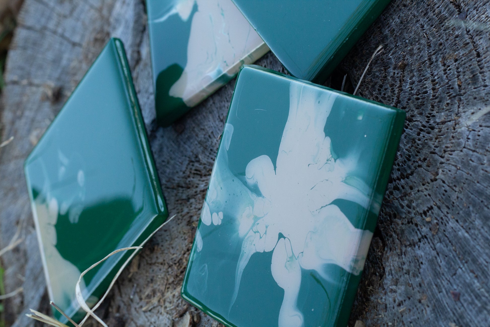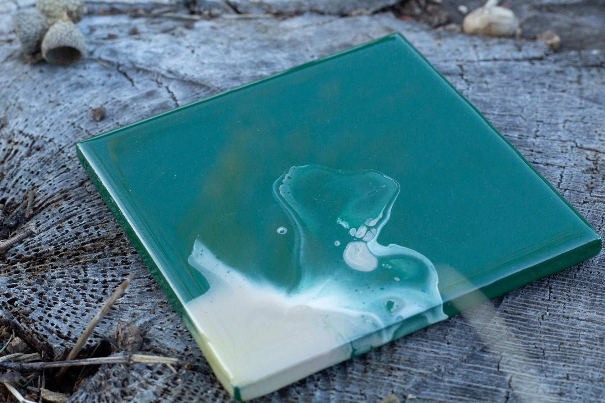 Acrylic Pour Paint Colors: Deep Forest Green, Tan & White