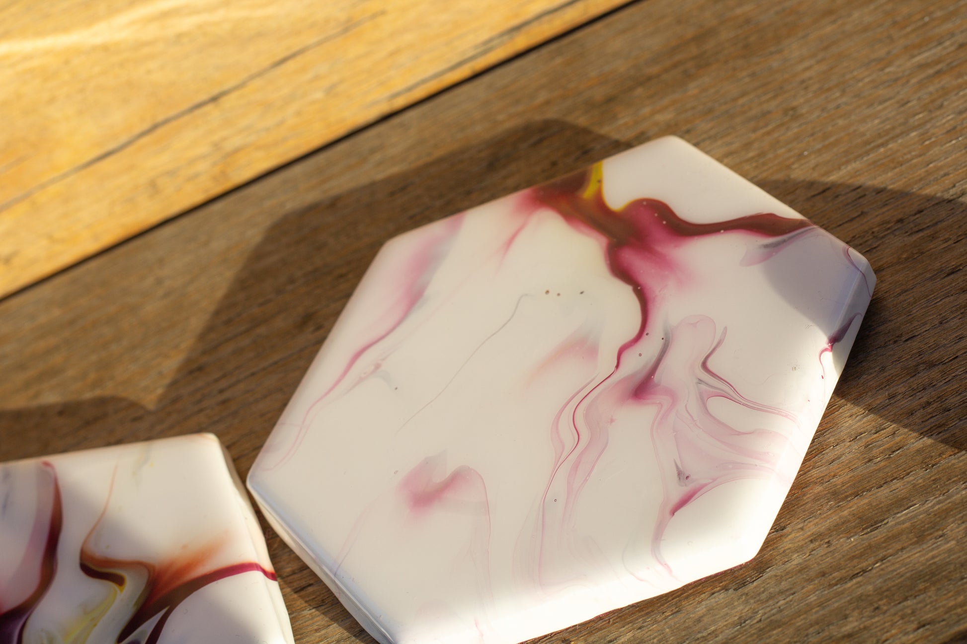 Hexagon Coasters are 4 1/4in x 4 7/8in x 5/16in